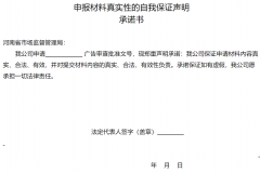 申報(bào)材料真實(shí)性的自我保證聲明承諾書(shū),河南省市場(chǎng)監(jiān)督管理局: 我公司申...